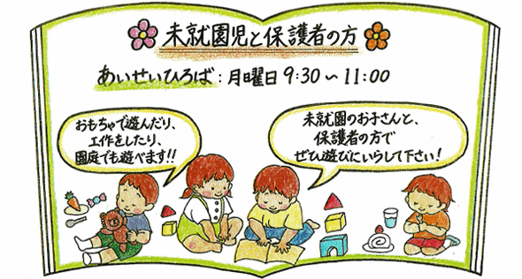 あいせいひろばは、幼稚園入園前のお子さまと保護者の方対象の、遊びの会です。