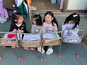 登園したら朝のお支度の時間です。こひつじノートにシールを貼ったり、コップやタオルを出して、準備をします。