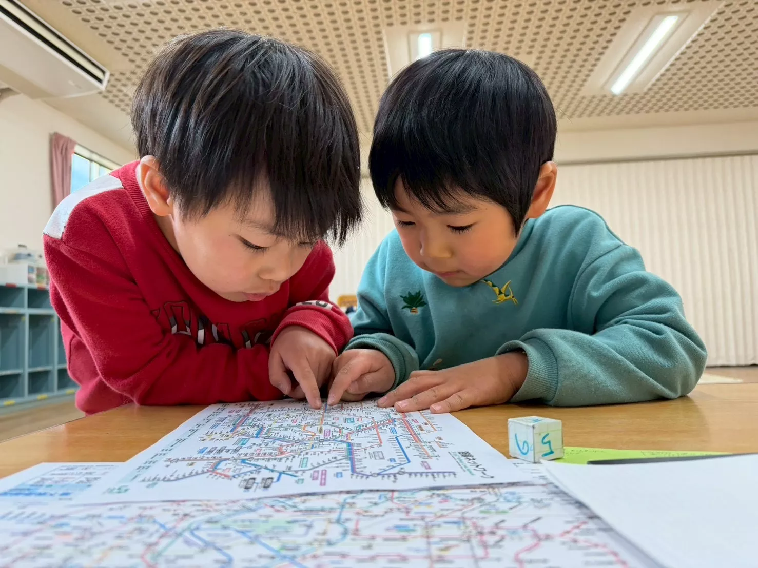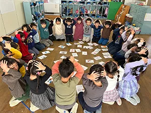 この日の年長組は手作りかるたでかるた大会。