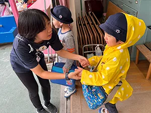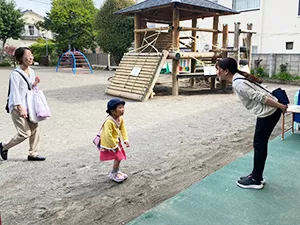 お帰りは14時です。水曜日は13時半。お迎え後は16時まで園庭開放で遊ぶことができます。
